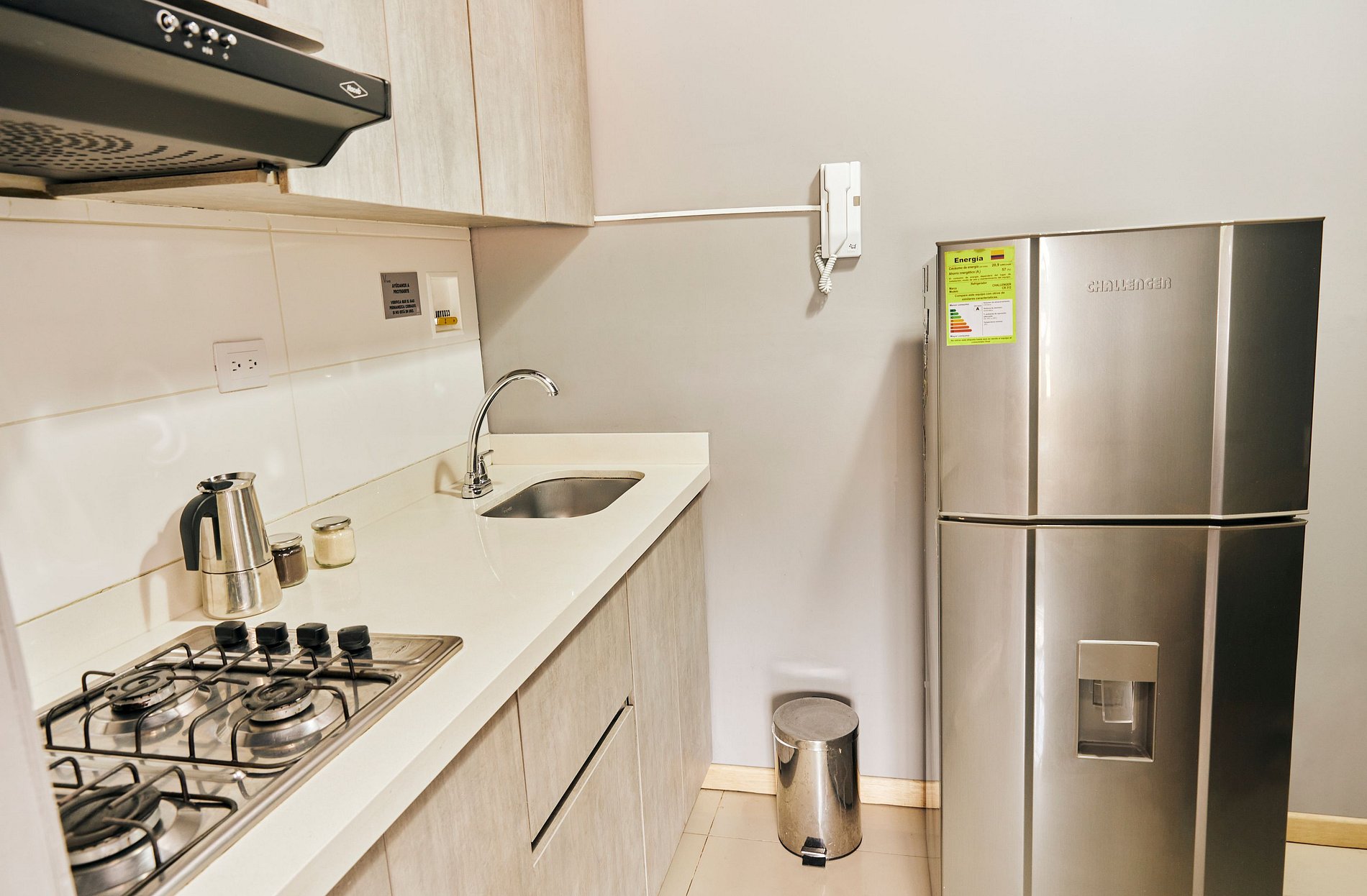 The apartment features a comfortable double bed (1.40 m) and a bedside table for added convenience. It includes an independent bathroom with hot water, fully equipped with towels, toilet paper, and body soap, ensuring a pleasant experience. The kitchen, powered by natural gas, is fully equipped with a microwave, refrigerator, pots, glasses, cups, cooking utensils, and a complete set of dishes. It also includes a coffee maker with a supply of coffee and sugar, perfect for enjoying a delicious cup of coffee at any time of the day. For your entertainment, there is a 32-inch television with a Netflix subscription and access to over-the-air channels. You will also find a closet with hangers for your clothing, a cozy dining area, and a work desk, creating a functional and comfortable environment for your stay.