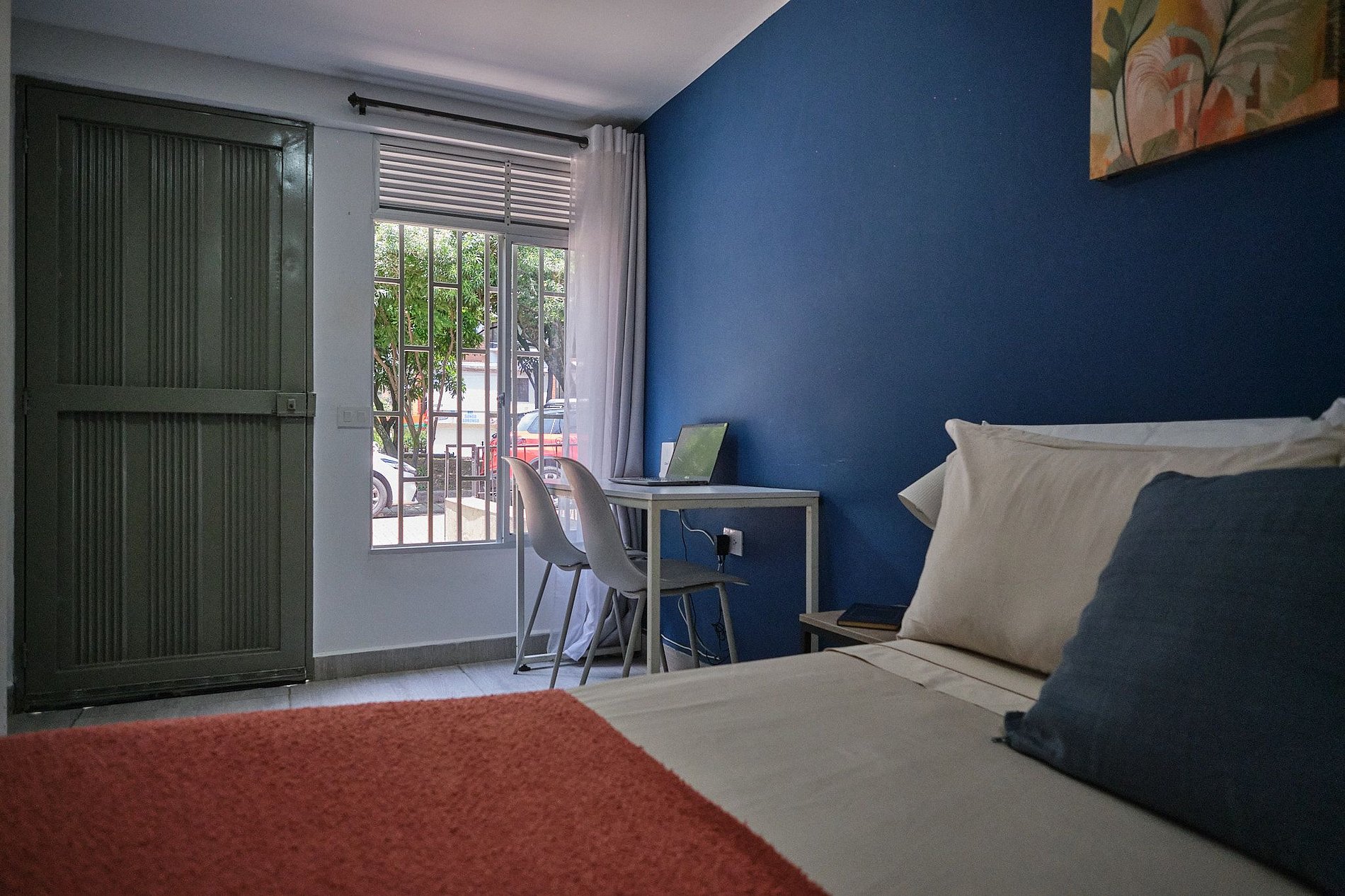 This charming two-story traditional building features virtual reception service and is conveniently located near a laundromat. Street parking is available at no cost and poses no issues, though we do not take responsibility for vehicles. Additionally, there are public parking options nearby, and we are just three blocks from the vibrant Zona Rosa of Laureles on Avenida 70.