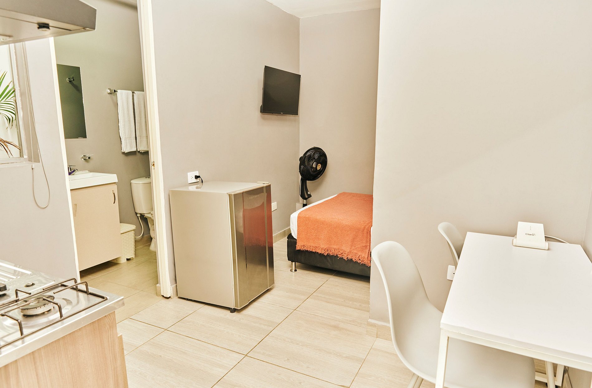 Each of our apartments is completely private and equipped with everything needed for a comfortable stay. We offer a shared laundry area, featuring a washer and dryer available for use during designated hours at no extra charge. If you require an iron or a blender, feel free to request them at reception. We also provide high-speed internet service with Movistar fiber optics, delivering speeds of 900 megas to keep you connected.