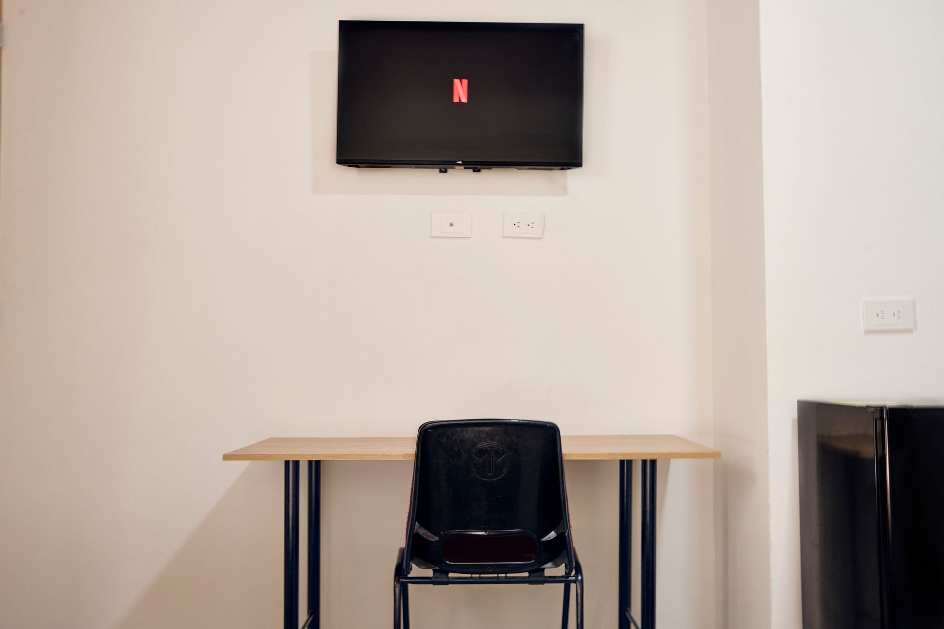 The kitchen is equipped with natural gas and includes a microwave, refrigerator, pots, glasses, cups, and kitchen utensils, as well as a complete set of dishes. You will also find a coffee maker with coffee and sugar supplies to start your day with energy. Relax while watching your favorite shows on the 32-inch TV, which includes a Netflix subscription and access to over-the-air channels. The closet is equipped with clothes hangers, and the dining table can be used for both enjoying meals and working comfortably.