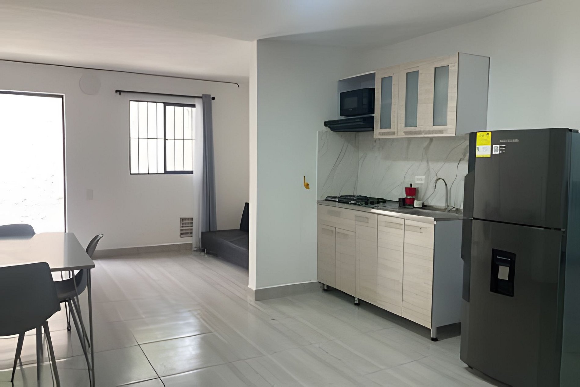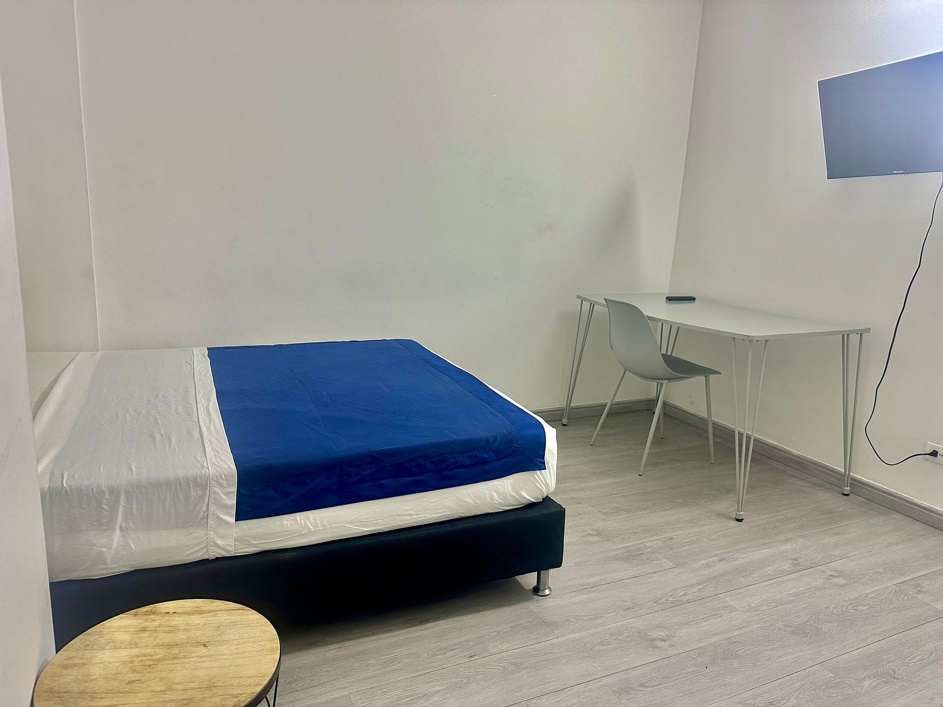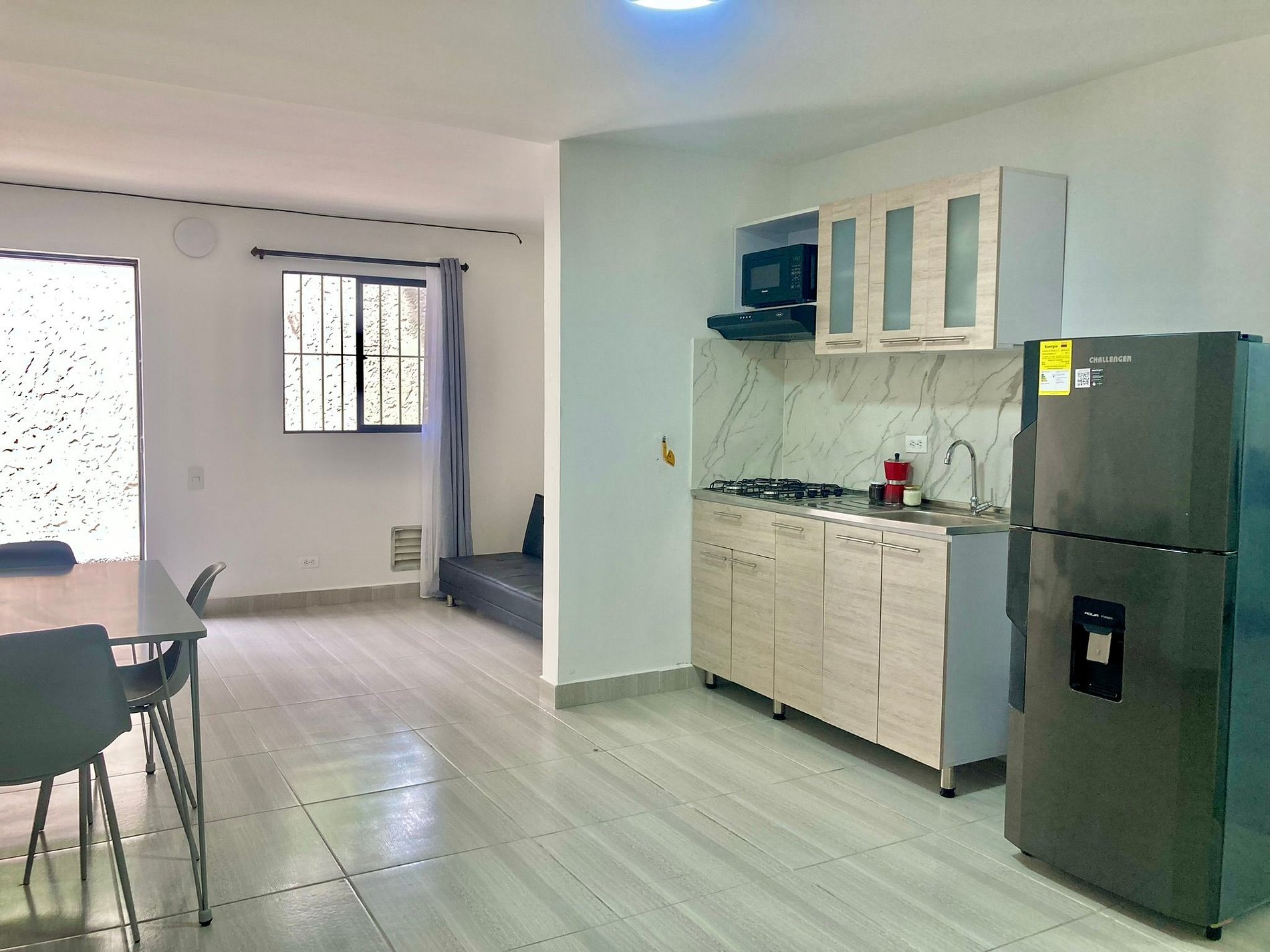Este acogedor y funcional espacio está diseñado para ofrecerte una estancia cómoda y práctica. Cuenta con una cama doble de 1.40 m y una mesa de noche ideal para tu comodidad. El baño independiente incluye agua caliente, toallas, papel higiénico y jabón corporal. La cocina, con gas natural, está completamente equipada con microondas, nevera, vajilla, ollas, utensilios, vasos, copas y una cafetera con café y azúcar para que comiences el día con energía. Disfruta de tus series favoritas en el televisor de 32” con acceso a Netflix y canales nacionales. El espacio también incluye un clóset con ganchos para ropa, un comedor y una mesa independiente como zona de trabajo, ideal para viajes de negocios o estancias largas.