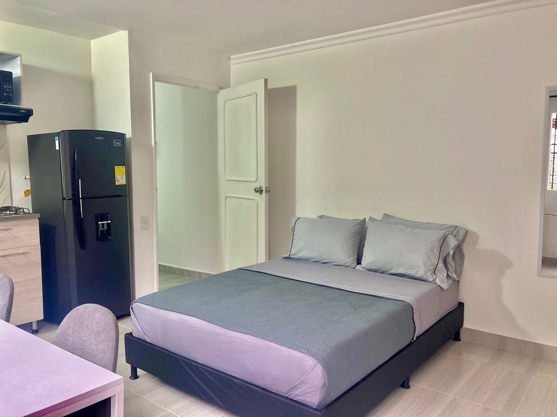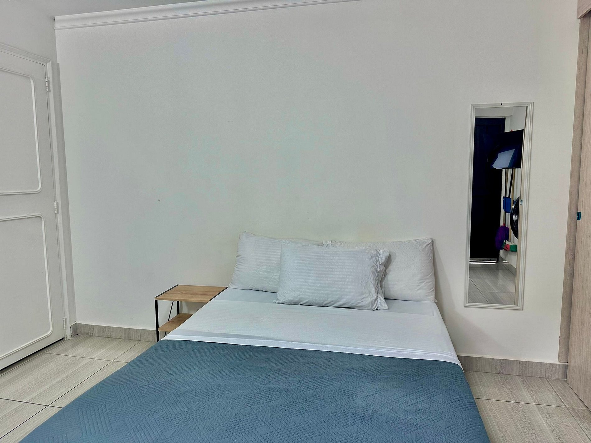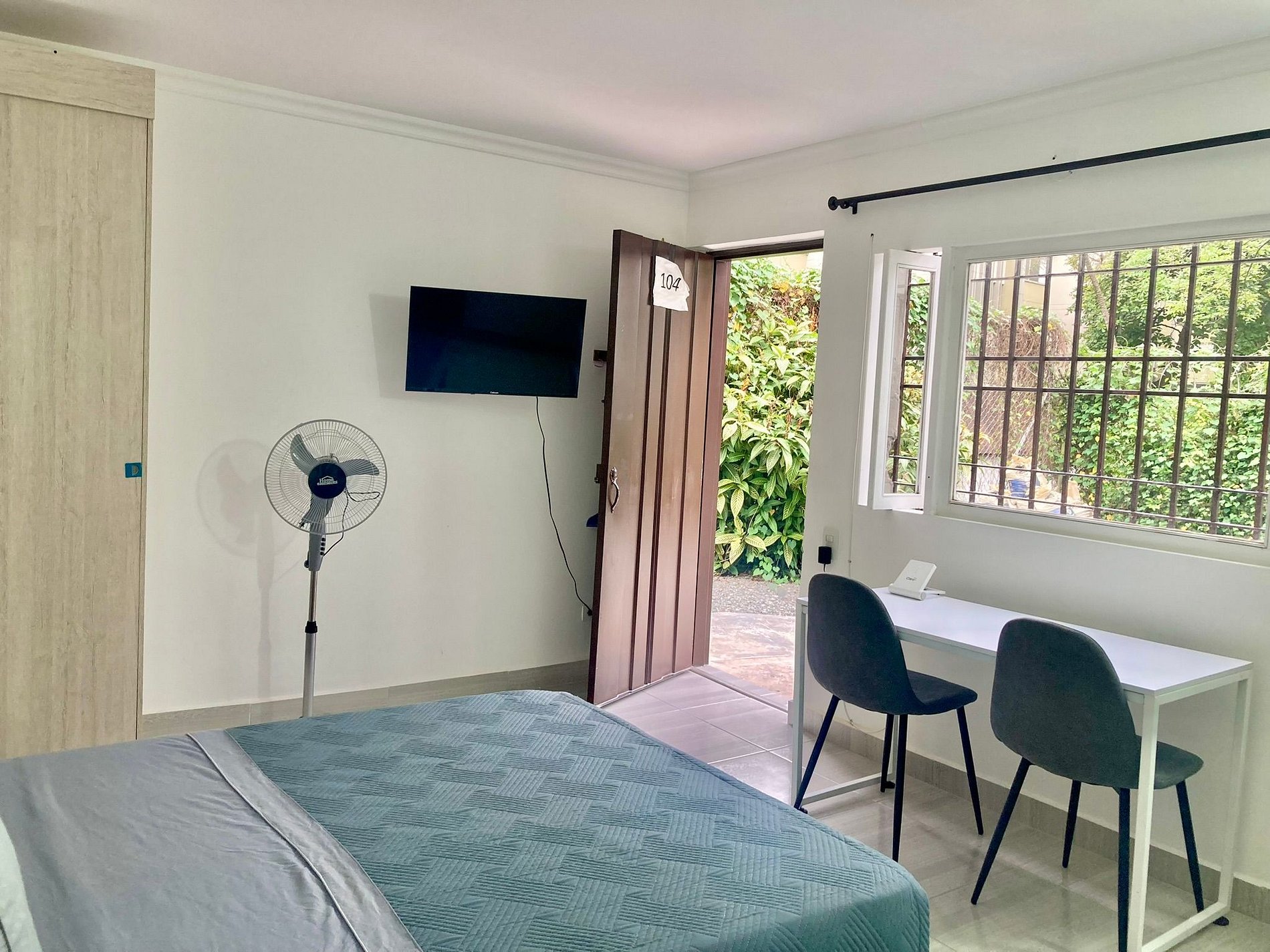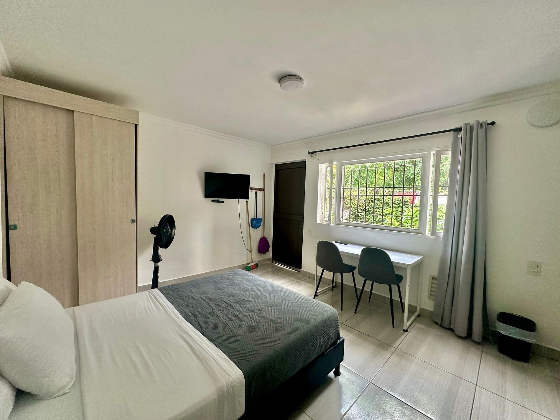 Este acogedor y funcional espacio está diseñado para ofrecerte una estancia cómoda y práctica. Cuenta con una cama doble de 1.40 m y una mesa de noche ideal para tu comodidad. El baño independiente incluye agua caliente, toallas, papel higiénico y jabón corporal. La cocina, con gas natural, está completamente equipada con microondas, nevera, vajilla, ollas, utensilios, vasos, copas y una cafetera con café y azúcar para que comiences el día con energía. Disfruta de tus series favoritas en el televisor de 32” con acceso a Netflix y canales nacionales. El espacio también incluye un clóset con ganchos para ropa, un comedor y una mesa independiente como zona de trabajo, ideal para viajes de negocios o estancias largas.