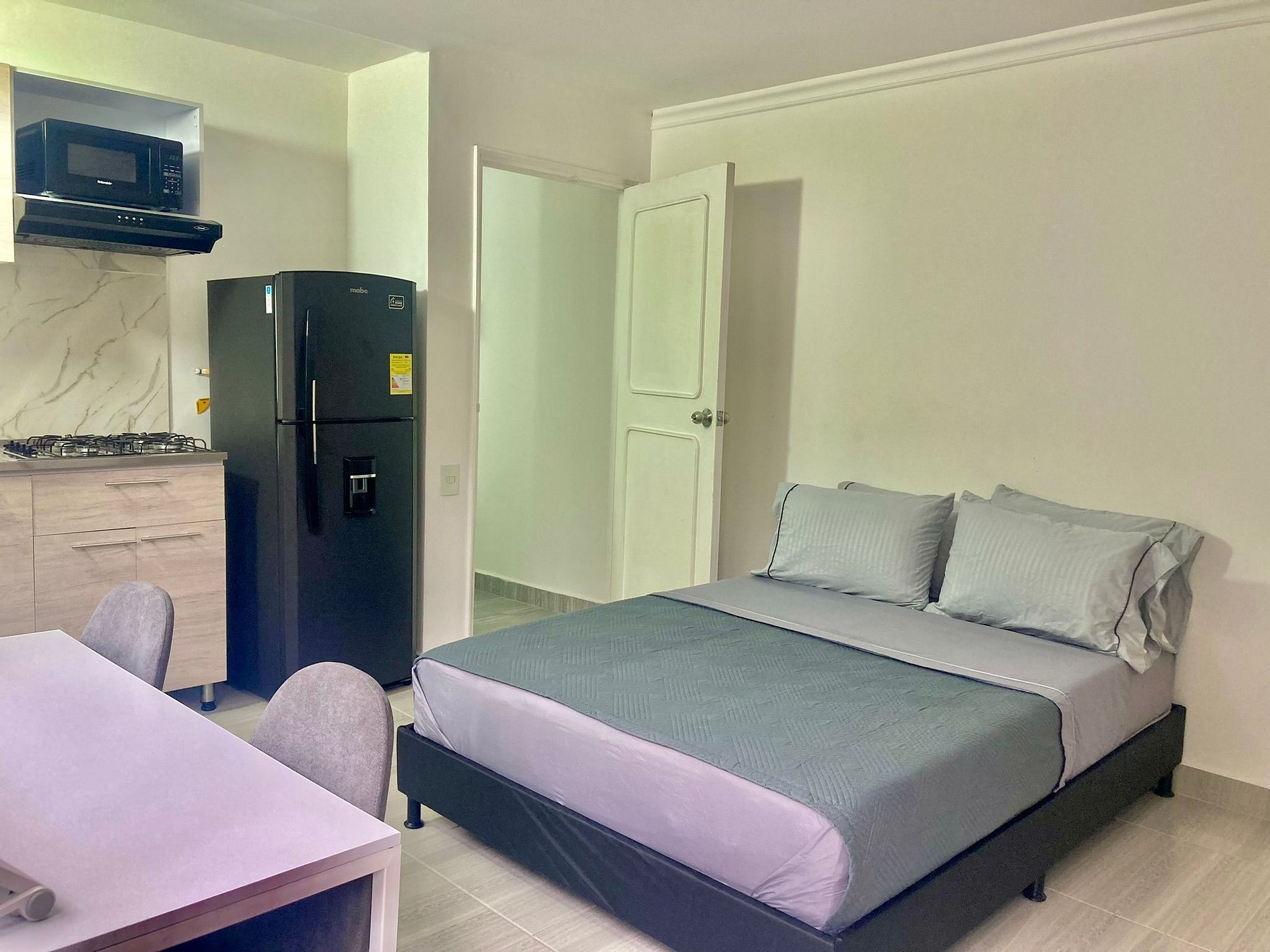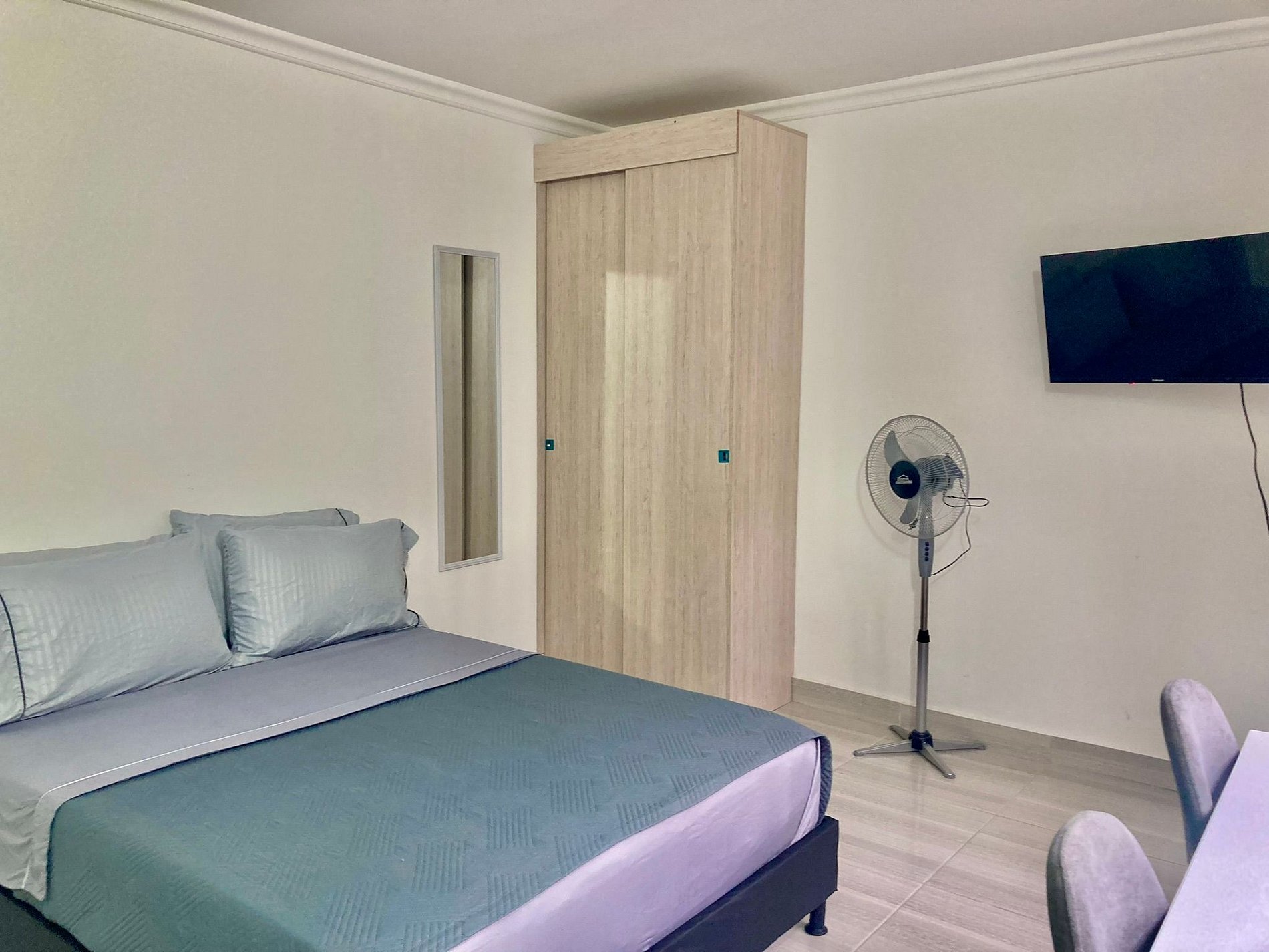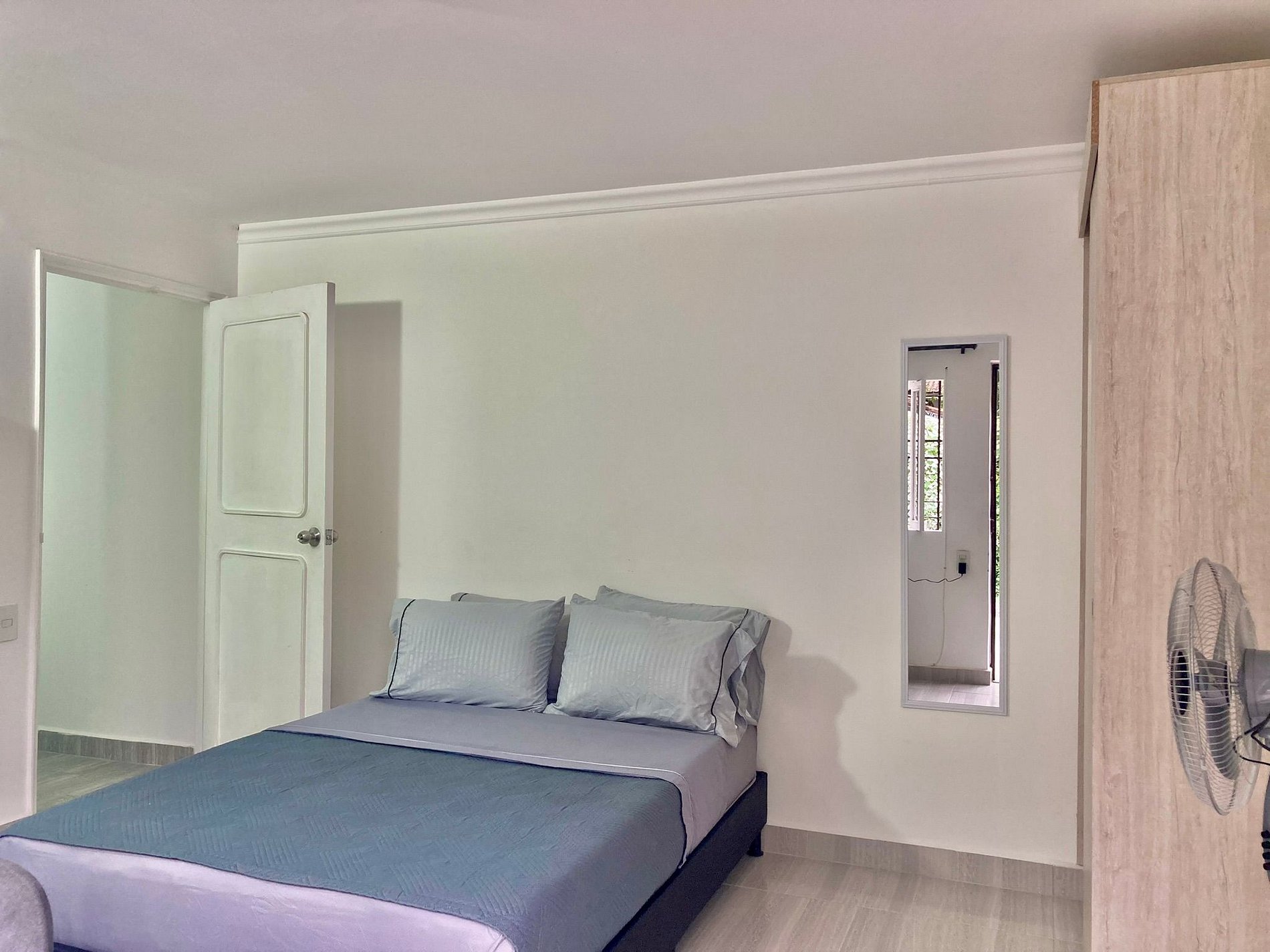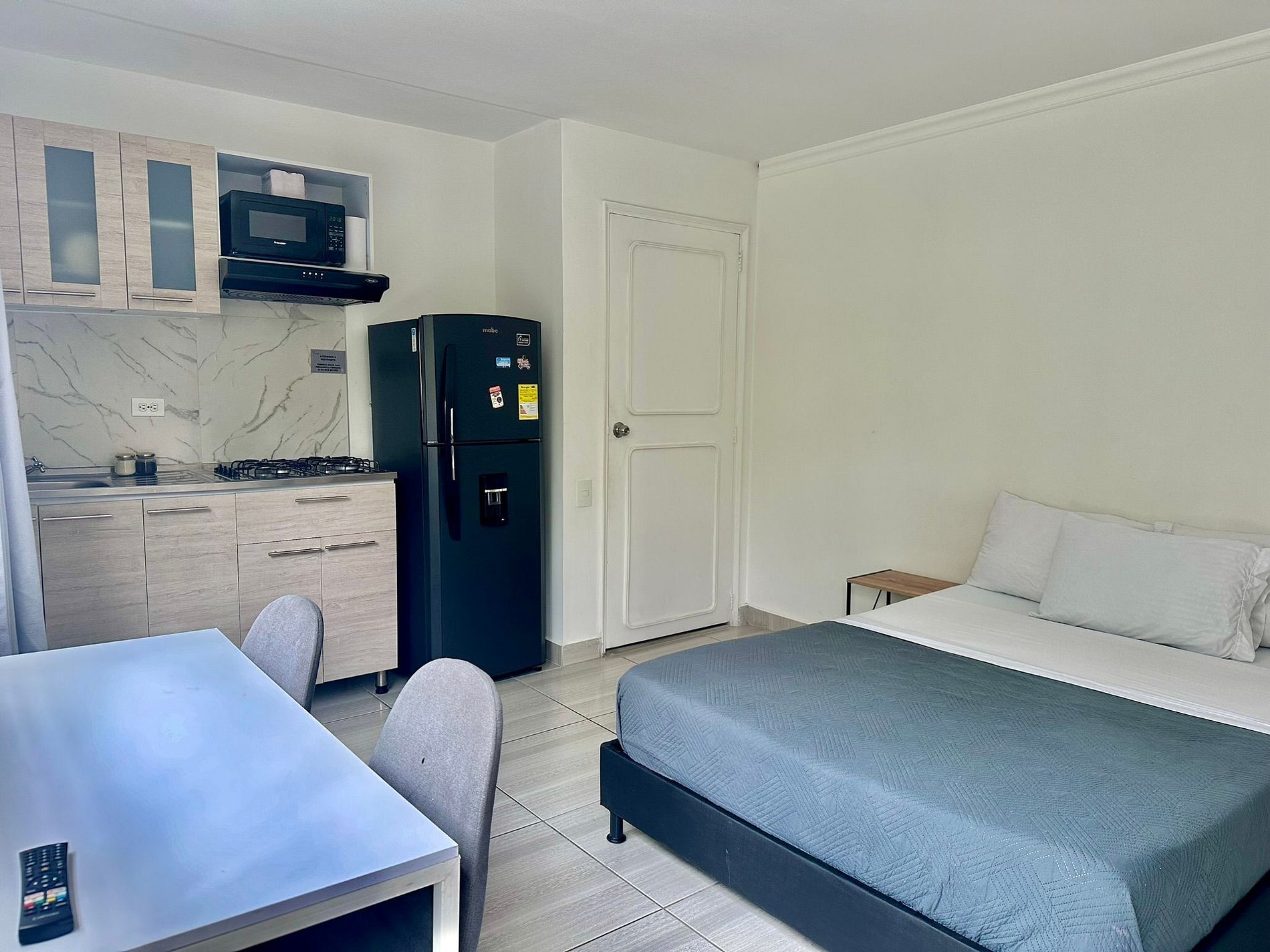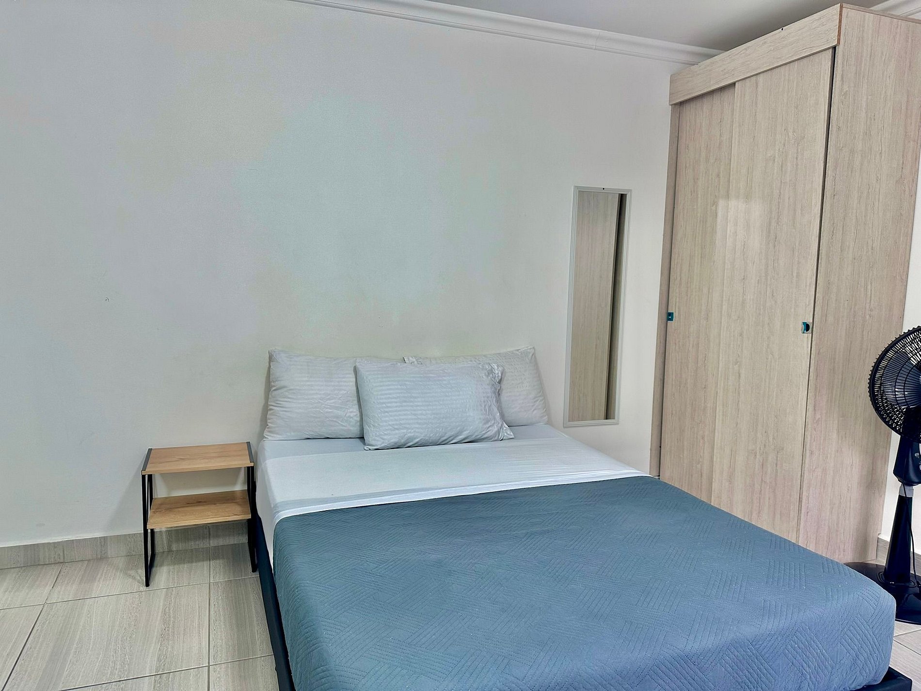 Este acogedor y funcional espacio está diseñado para ofrecerte una estancia cómoda y práctica. Cuenta con una cama doble de 1.40 m y una mesa de noche ideal para tu comodidad. El baño independiente incluye agua caliente, toallas, papel higiénico y jabón corporal. La cocina, con gas natural, está completamente equipada con microondas, nevera, vajilla, ollas, utensilios, vasos, copas y una cafetera con café y azúcar para que comiences el día con energía. Disfruta de tus series favoritas en el televisor de 32” con acceso a Netflix y canales nacionales. El espacio también incluye un clóset con ganchos para ropa, un comedor y una mesa independiente como zona de trabajo, ideal para viajes de negocios o estancias largas.