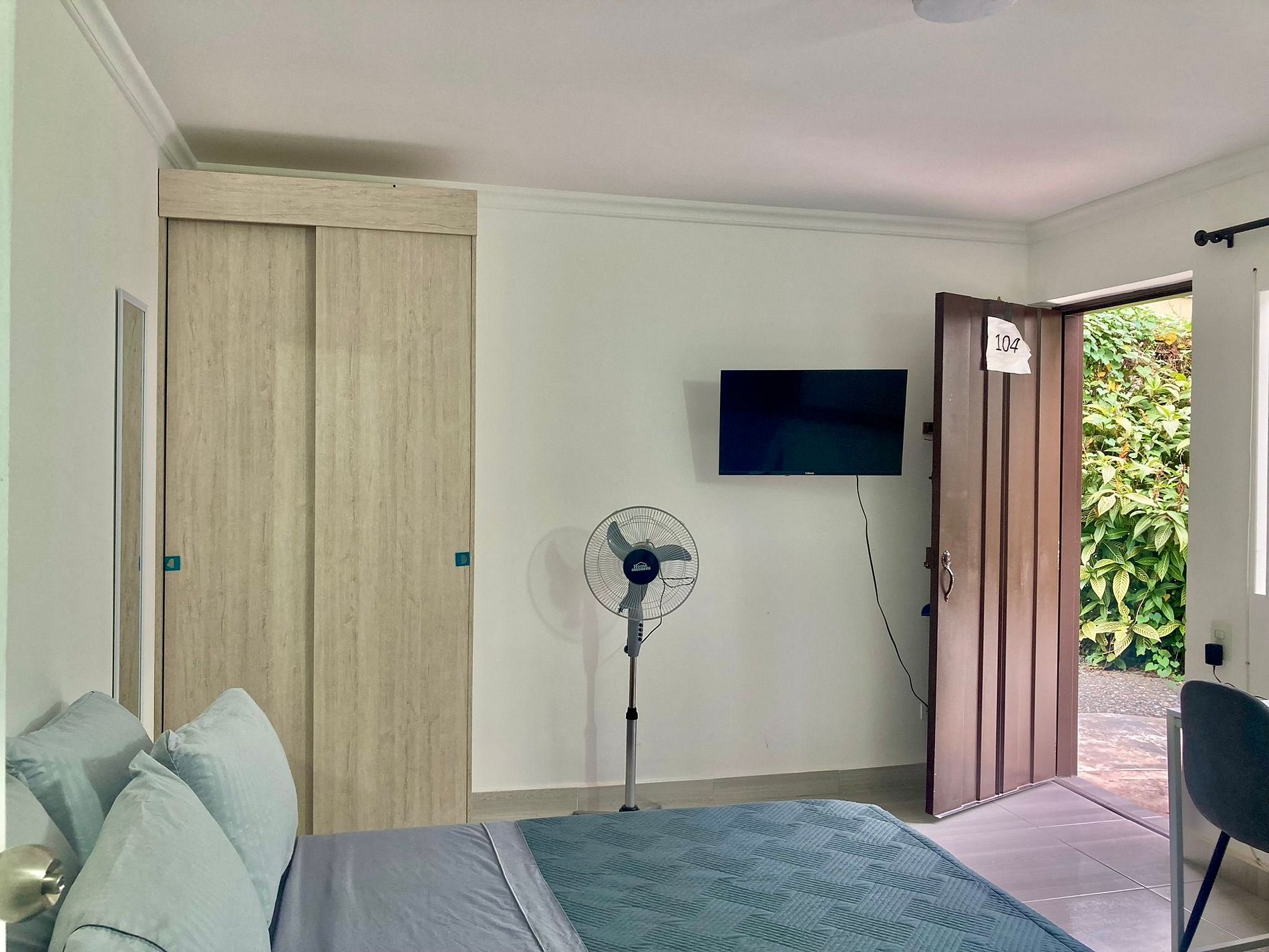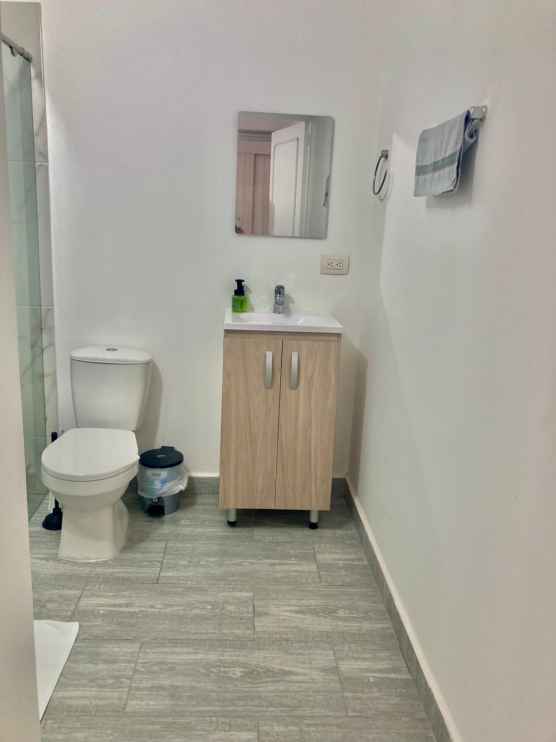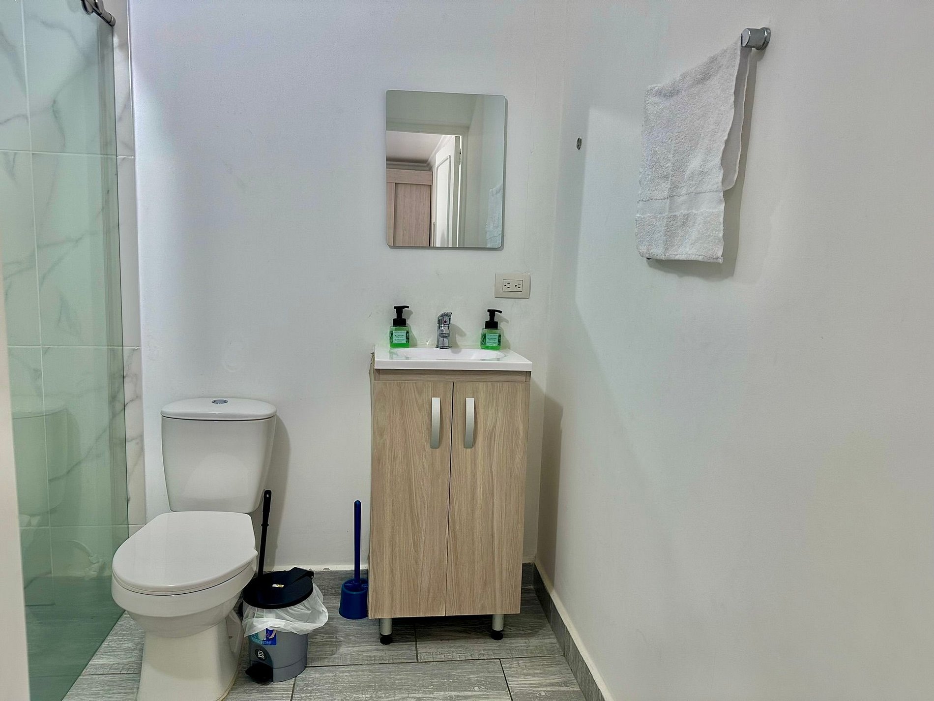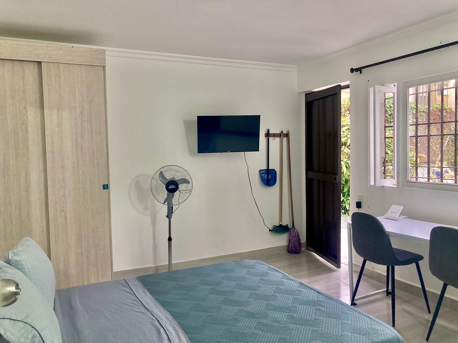 Este acogedor y funcional espacio está diseñado para ofrecerte una estancia cómoda y práctica. Cuenta con una cama doble de 1.40 m y una mesa de noche ideal para tu comodidad. El baño independiente incluye agua caliente, toallas, papel higiénico y jabón corporal. La cocina, con gas natural, está completamente equipada con microondas, nevera, vajilla, ollas, utensilios, vasos, copas y una cafetera con café y azúcar para que comiences el día con energía. Disfruta de tus series favoritas en el televisor de 32” con acceso a Netflix y canales nacionales. El espacio también incluye un clóset con ganchos para ropa, un comedor y una mesa independiente como zona de trabajo, ideal para viajes de negocios o estancias largas.