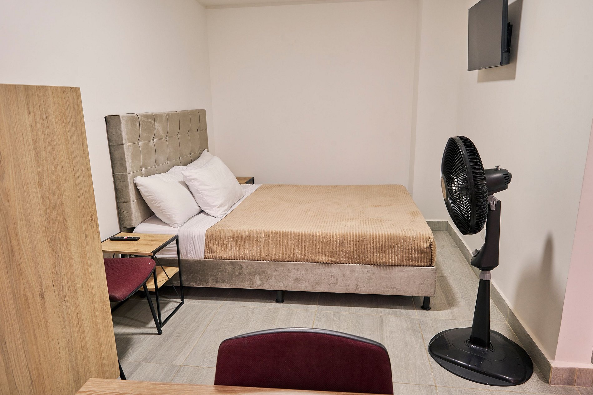 Este espacio ofrece todo el confort que necesitas. Dispone de una cama doble de 1.40 cm con mesa de noche, y un baño privado con agua caliente, equipado con toallas, papel higiénico y jabón corporal. La cocina, que funciona con gas natural, está totalmente equipada con microondas, nevera, ollas, vasos, copas, utensilios de cocina, vajilla completa, y una cafetera con suministro de café y azúcar para tu comodidad. Además, el apartamento cuenta con un televisor de 32 pulgadas con suscripción a Netflix y canales de aire. El clóset incluye ganchos para la ropa, y también dispones de un comedor y una mesa de trabajo para mayor funcionalidad.