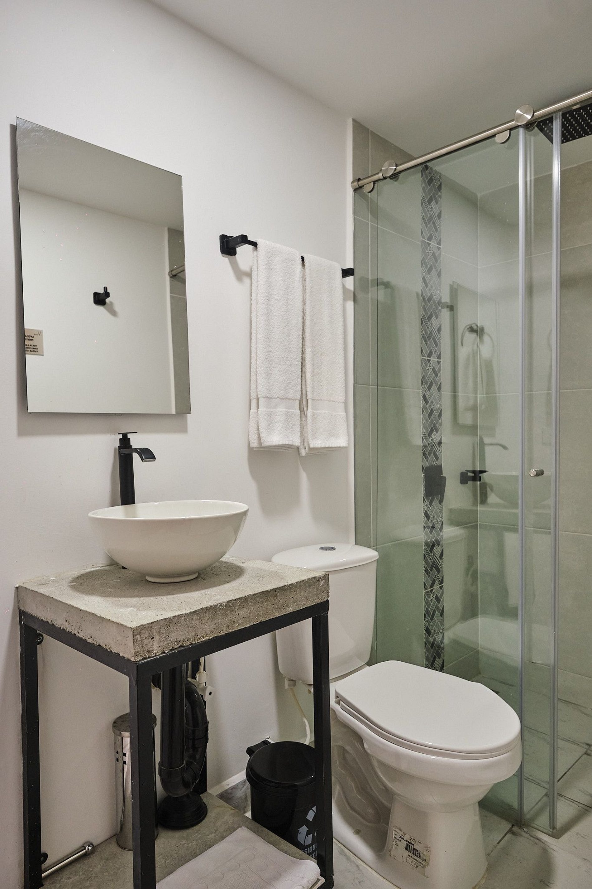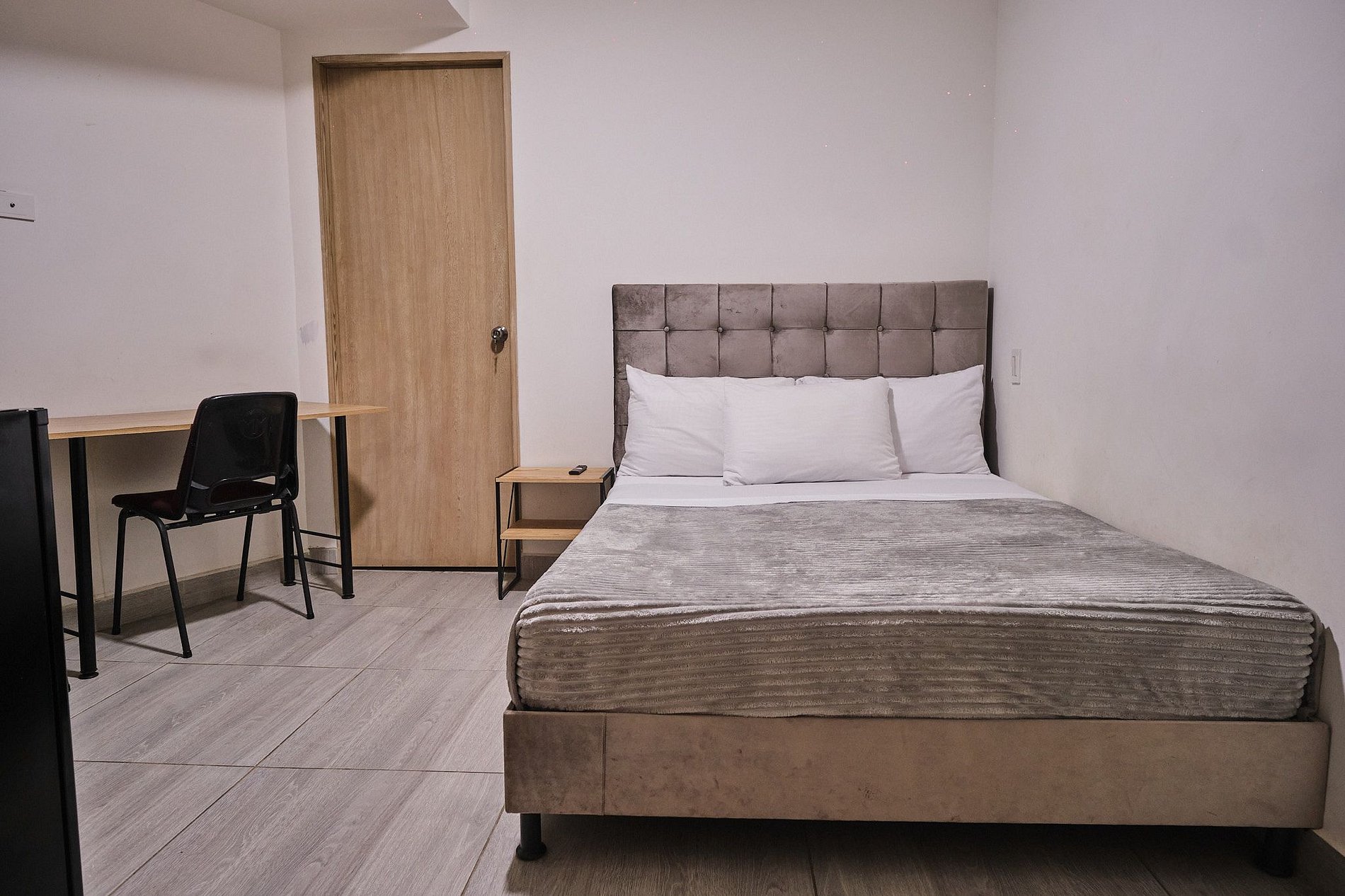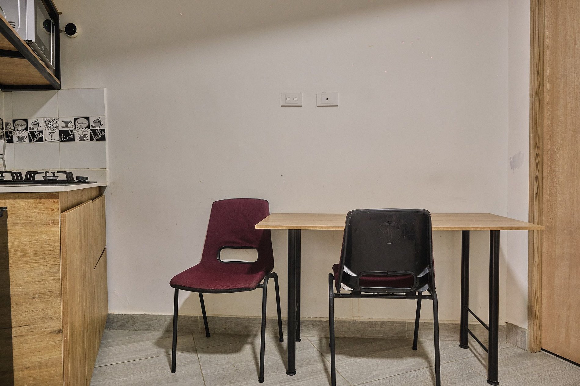 Este espacio ofrece todo el confort que necesitas. Dispone de una cama doble de 1.40 cm con mesa de noche, y un baño privado con agua caliente, equipado con toallas, papel higiénico y jabón corporal. La cocina, que funciona con gas natural, está totalmente equipada con microondas, nevera, ollas, vasos, copas, utensilios de cocina, vajilla completa, y una cafetera con suministro de café y azúcar para tu comodidad. Además, el apartamento cuenta con un televisor de 32 pulgadas con suscripción a Netflix y canales de aire. El clóset incluye ganchos para la ropa, y también dispones de un comedor y una mesa de trabajo para mayor funcionalidad.