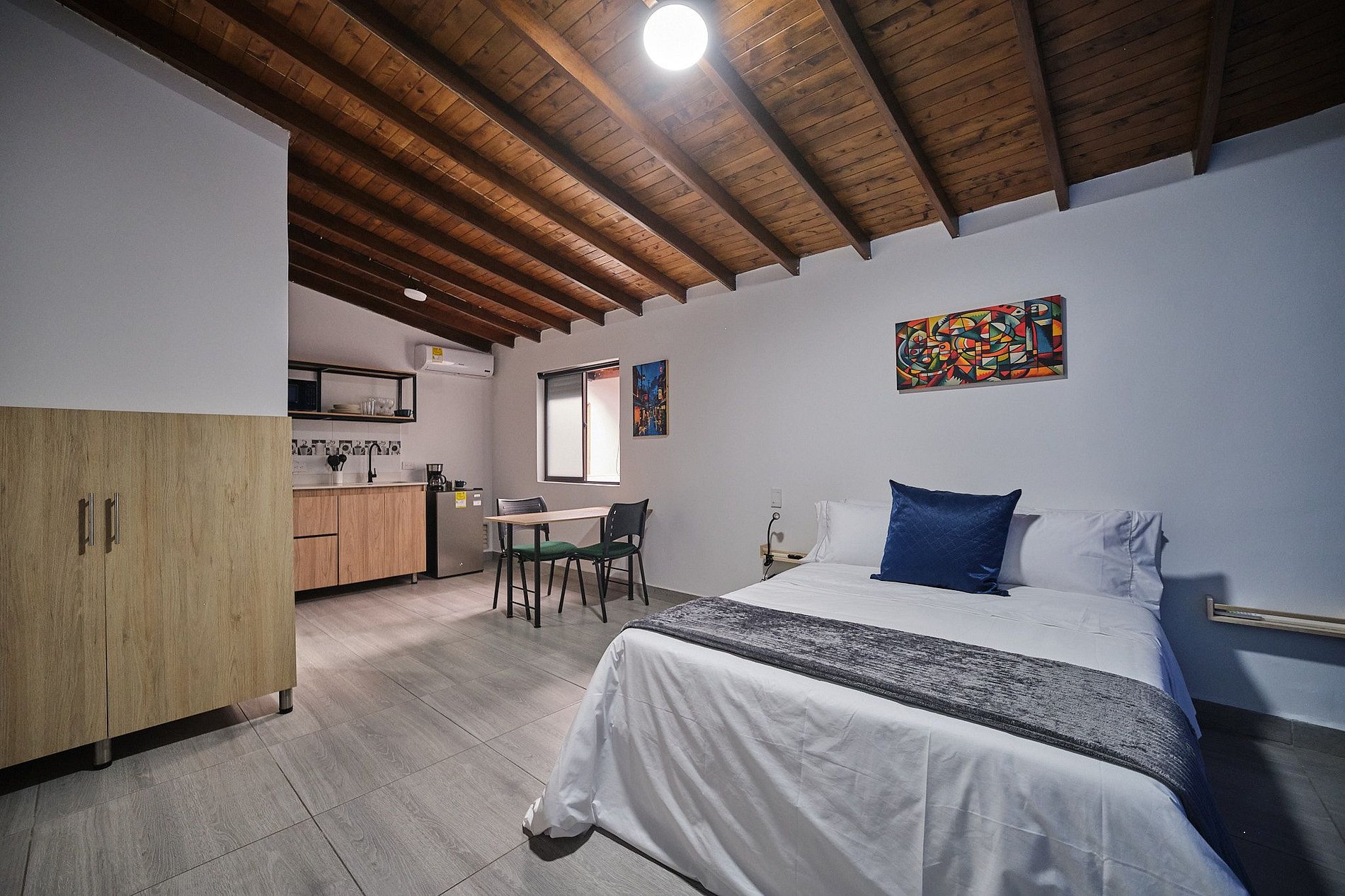 Cada loft es totalmente privado y está diseñado como un mini apartamento funcional, con aire acondicionado, cocina equipada, baño privado y excelentes acabados. Un espacio pensado para que te sientas cómodo, con independencia y todo lo necesario para una estancia placentera.