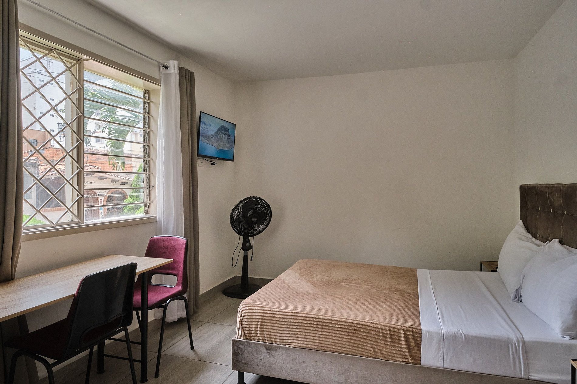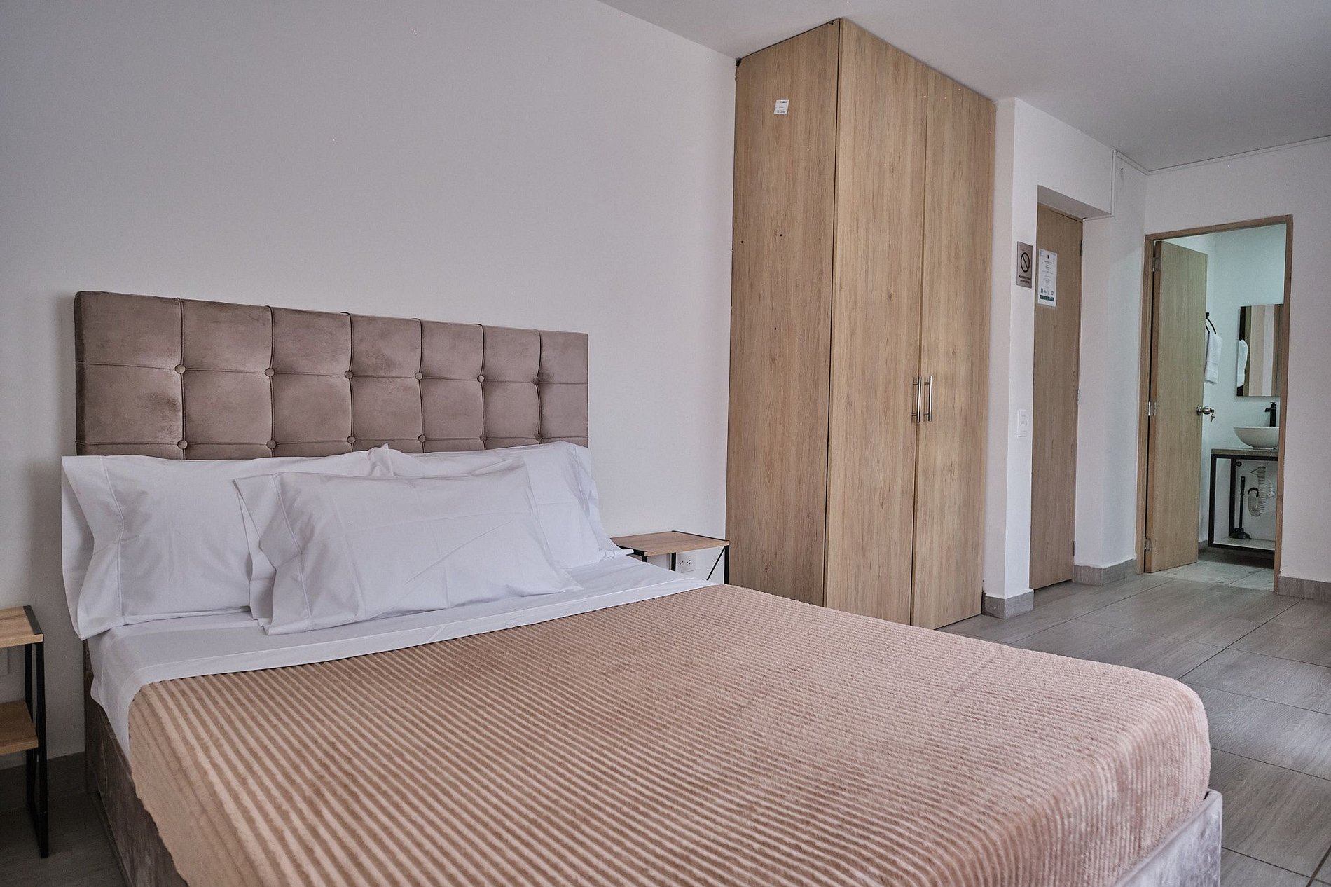 Este espacio ofrece todo el confort que necesitas. Dispone de una cama doble de 1.40 cm con mesa de noche y un baño privado con agua caliente, equipado con toallas, papel higiénico y jabón corporal para tu comodidad. La cocina, que funciona con gas natural, está totalmente equipada con microondas, nevera, ollas, vasos, copas, utensilios de cocina, vajilla completa y una cafetera con suministro de café y azúcar, ideal para preparar tus comidas o disfrutar de un buen café por la mañana. Además, el apartamento cuenta con un televisor de 32 pulgadas con suscripción a Netflix y canales de aire. El clóset incluye ganchos para la ropa, y también dispones de un comedor y una mesa de trabajo que aportan funcionalidad y comodidad al espacio. Gracias a su ventana hacia el exterior, el apartamento recibe luz natural y ventilación, creando un ambiente cálido y agradable para disfrutar de una estancia confortable.