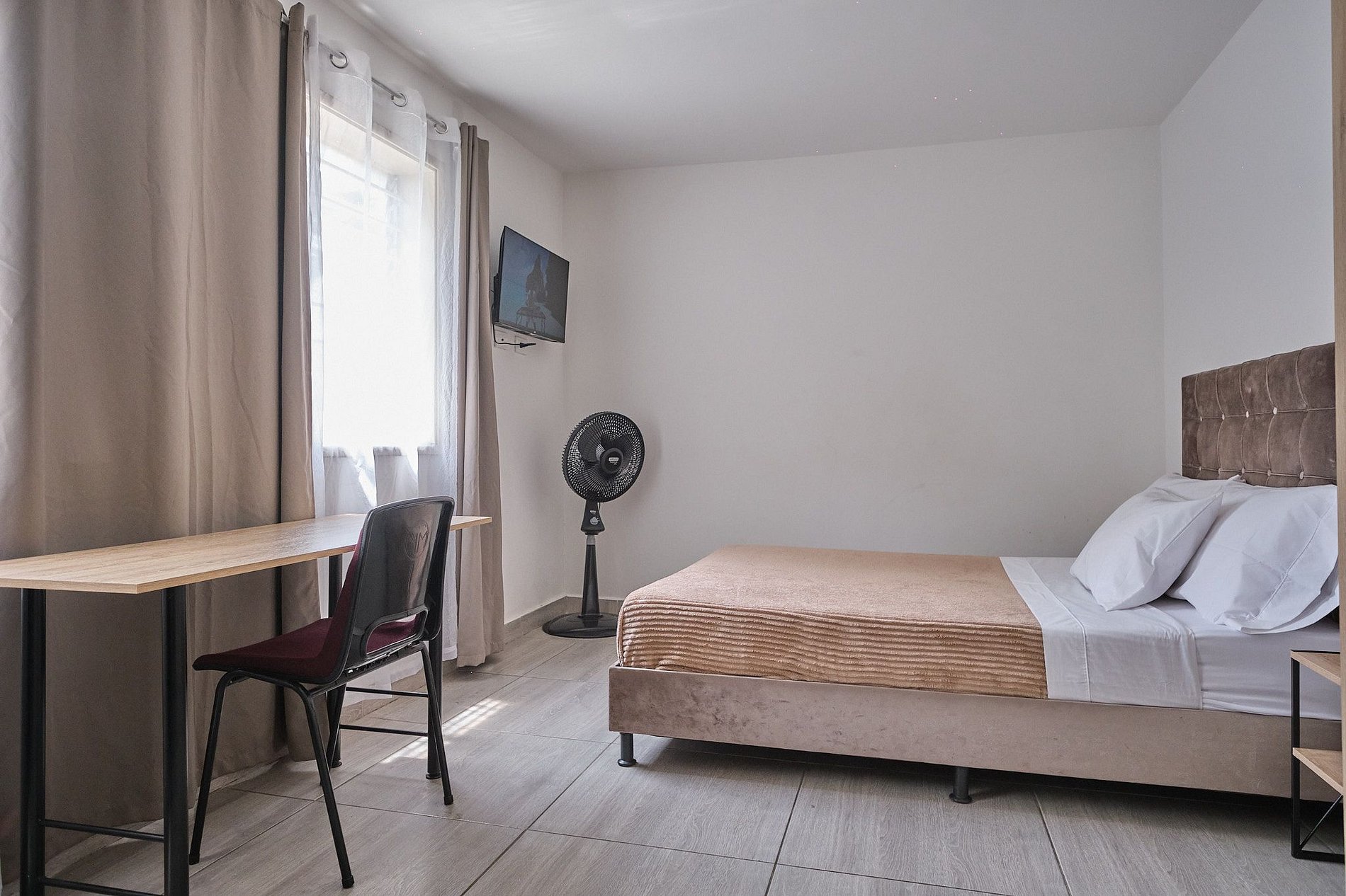 Este espacio ofrece todo el confort que necesitas. Dispone de una cama doble de 1.40 cm con mesa de noche y un baño privado con agua caliente, equipado con toallas, papel higiénico y jabón corporal para tu comodidad. La cocina, que funciona con gas natural, está totalmente equipada con microondas, nevera, ollas, vasos, copas, utensilios de cocina, vajilla completa y una cafetera con suministro de café y azúcar, ideal para preparar tus comidas o disfrutar de un buen café por la mañana. Además, el apartamento cuenta con un televisor de 32 pulgadas con suscripción a Netflix y canales de aire. El clóset incluye ganchos para la ropa, y también dispones de un comedor y una mesa de trabajo que aportan funcionalidad y comodidad al espacio. Gracias a su ventana hacia el exterior, el apartamento recibe luz natural y ventilación, creando un ambiente cálido y agradable para disfrutar de una estancia confortable.