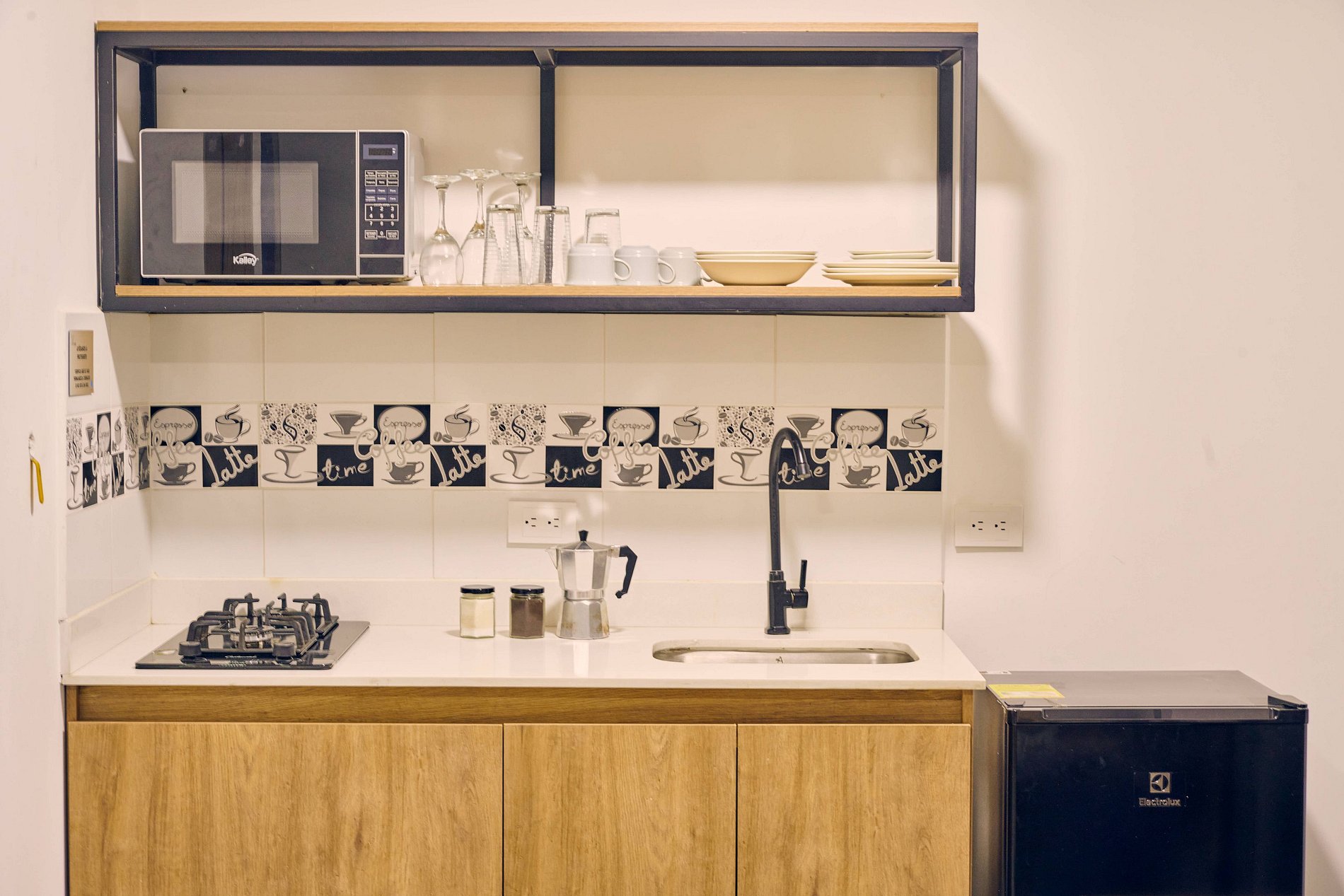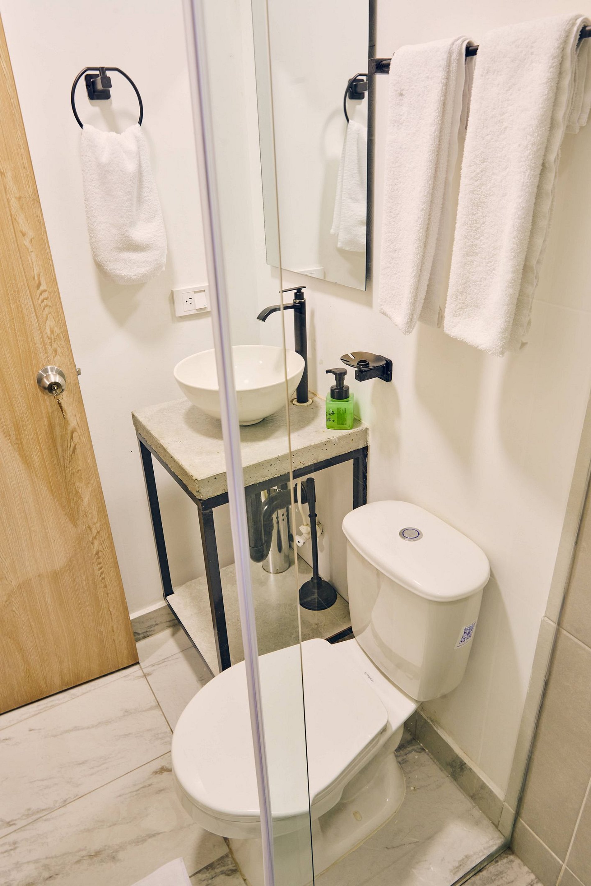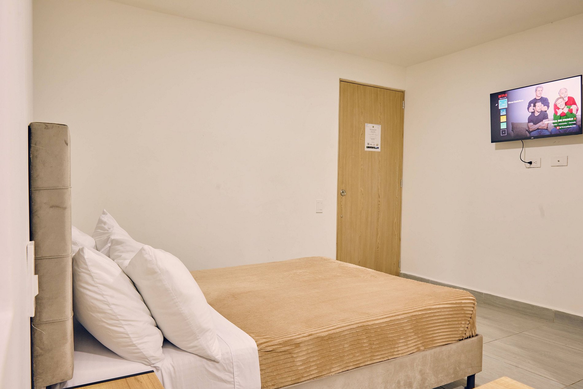 Este espacio ofrece todo el confort que necesitas. Dispone de una cama doble de 1.40 cm con mesa de noche, y un baño privado con agua caliente, equipado con toallas, papel higiénico y jabón corporal. La cocina, que funciona con gas natural, está totalmente equipada con microondas, nevera, ollas, vasos, copas, utensilios de cocina, vajilla completa, y una cafetera con suministro de café y azúcar para tu comodidad. Además, el apartamento cuenta con un televisor de 32 pulgadas con suscripción a Netflix y canales de aire. El clóset incluye ganchos para la ropa, y también dispones de un comedor y una mesa de trabajo para mayor funcionalidad.