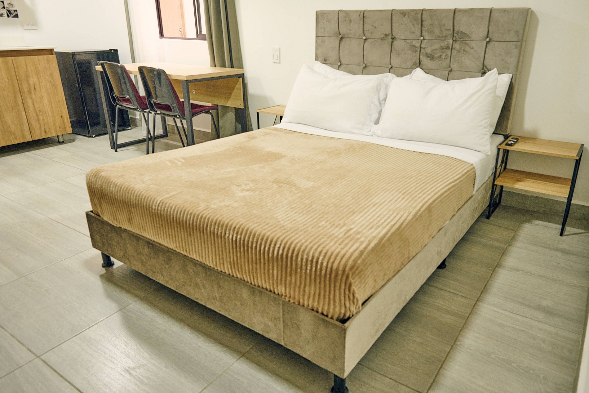 Este espacio ofrece todo el confort que necesitas. Dispone de una cama doble de 1.40 cm con mesa de noche, y un baño privado con agua caliente, equipado con toallas, papel higiénico y jabón corporal. La cocina, que funciona con gas natural, está totalmente equipada con microondas, nevera, ollas, vasos, copas, utensilios de cocina, vajilla completa, y una cafetera con suministro de café y azúcar para tu comodidad. Además, el apartamento cuenta con un televisor de 32 pulgadas con suscripción a Netflix y canales de aire. El clóset incluye ganchos para la ropa, y también dispones de un comedor y una mesa de trabajo para mayor funcionalidad.