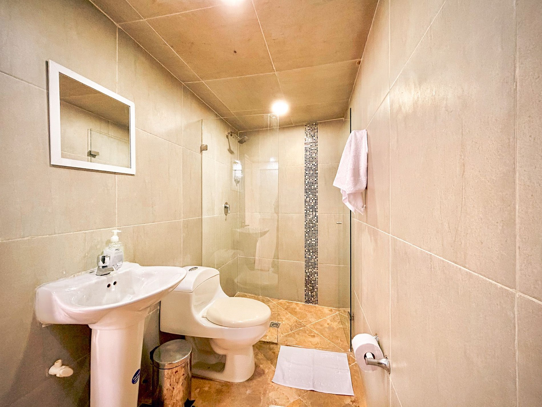 Este espacio ofrece todo el confort que necesitas para disfrutar de una estancia cómoda y agradable. Dispone de una cama doble de 1.40 cm con mesa de noche y un baño privado con agua caliente, completamente equipado con toallas, papel higiénico y jabón corporal para tu bienestar. La cocina eléctrica está totalmente equipada con microondas, nevera, ollas, vasos, copas, utensilios de cocina, vajilla completa y una cafetera con café y azúcar de cortesía, ideal para preparar tus comidas o comenzar el día con una buena taza de café. Para tu comodidad, el apartamento también cuenta con lavadora dentro del alojamiento, lo que te permitirá realizar tus tareas de lavado con total practicidad durante tu estancia. Además, dispone de un televisor de 32 pulgadas con suscripción a Netflix y canales de aire, un clóset con ganchos para la ropa, así como un comedor y una mesa de trabajo, pensados para ofrecerte funcionalidad y confort en todo momento. Este apartamento combina practicidad, comodidad y calidez, brindándote todo lo necesario para que te sientas como en casa.