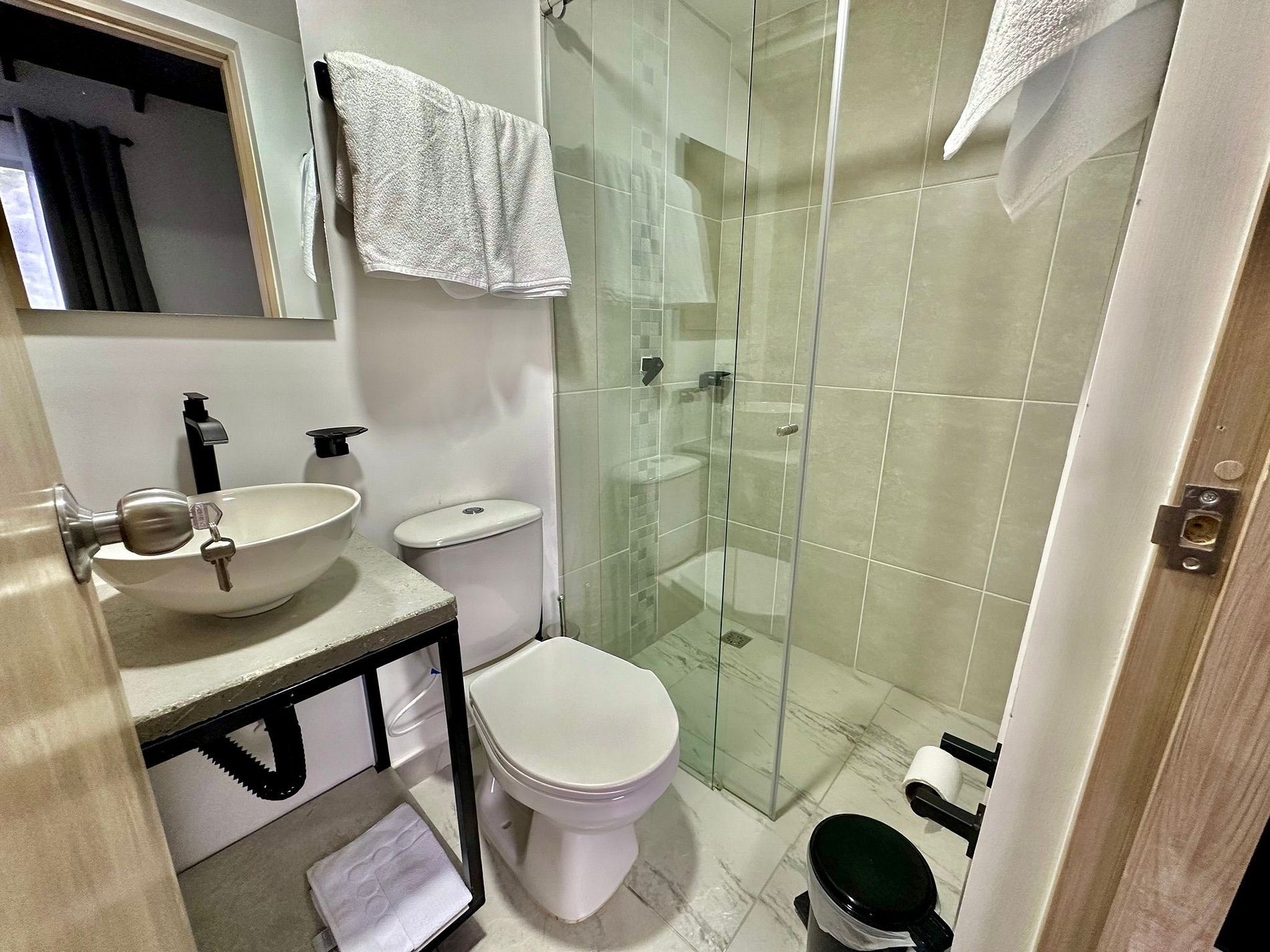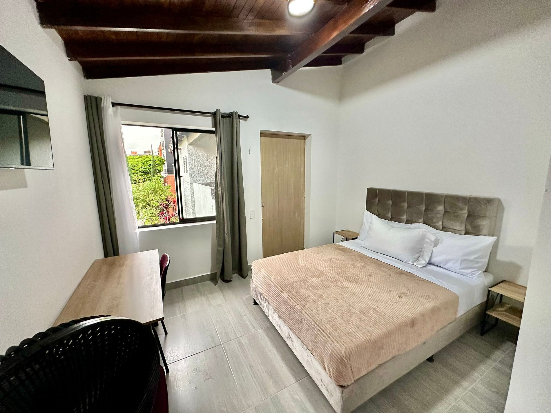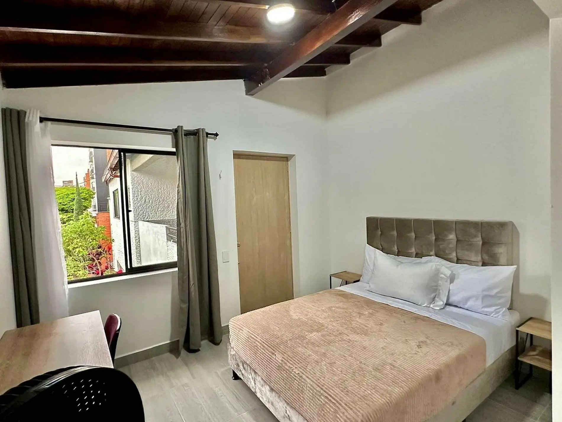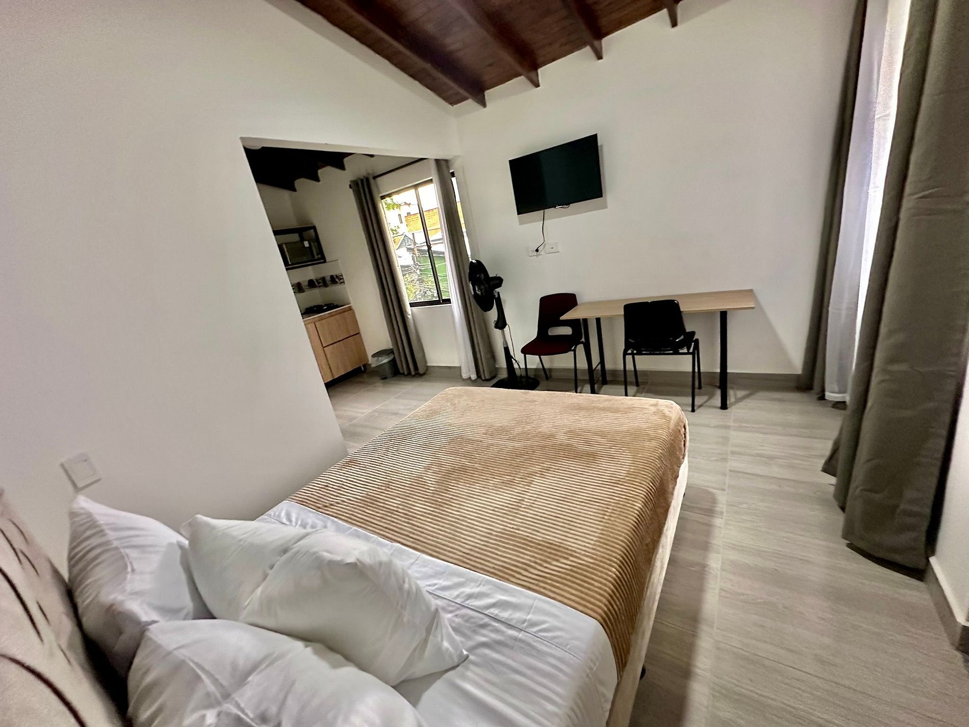 Este espacio ofrece todo el confort que necesitas para disfrutar de una estancia cómoda y agradable. Dispone de una cama doble de 1.40 cm con mesa de noche y un baño privado con agua caliente, completamente equipado con toallas, papel higiénico y jabón corporal para tu comodidad. La cocina, que funciona con gas natural, está totalmente equipada con microondas, nevera, ollas, vasos, copas, utensilios de cocina, vajilla completa y una cafetera con suministro de café y azúcar, ideal para preparar tus comidas o disfrutar de un buen café por la mañana. Además, el apartamento cuenta con un televisor de 32 pulgadas con suscripción a Netflix y canales de aire. El clóset incluye ganchos para la ropa, y también dispones de un comedor y una mesa de trabajo, pensados para ofrecerte funcionalidad y comodidad durante tu estancia.Gracias a su ventana hacia el exterior, el apartamento recibe una agradable iluminación natural y ventilación, creando un ambiente cálido, fresco y acogedor que invita al descanso.