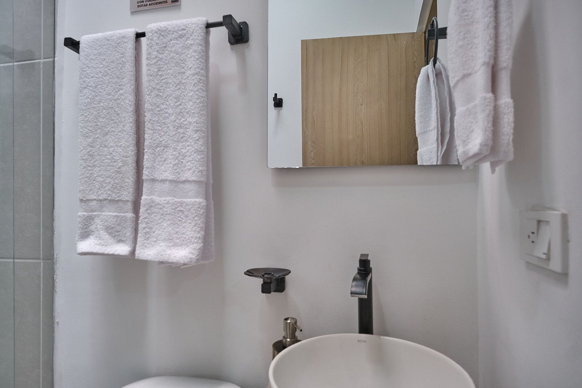 Este espacio ofrece todo el confort que necesitas. Dispone de una cama doble de 1.40 cm con mesa de noche, y un baño privado con agua caliente, equipado con toallas, papel higiénico y jabón corporal. La cocina, que funciona con gas natural, está totalmente equipada con microondas, nevera, ollas, vasos, copas, utensilios de cocina, vajilla completa, y una cafetera con suministro de café y azúcar para tu comodidad. Además, el apartamento cuenta con un televisor de 32 pulgadas con suscripción a Netflix y canales de aire. El clóset incluye ganchos para la ropa, y también dispones de un comedor y una mesa de trabajo para mayor funcionalidad.